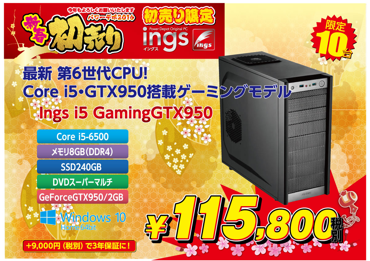 No.3 ings i5 Gaming 2016 ¥115,800-(税別)