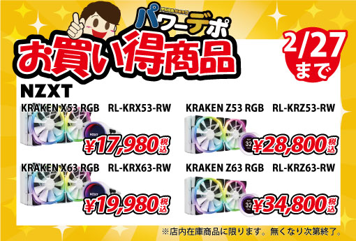 セール期間中、NZXTの簡易水冷CPUクーラー「KRAKEN」シリーズのホワイトモデルが特別価格にて登場!