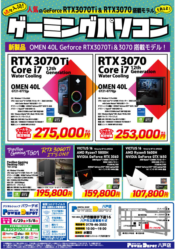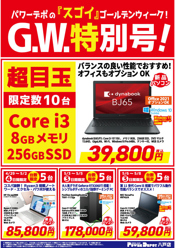 GW期間中お得なのは、組立パソコンだけじゃない!?パワーデポ八戸店限定!超お買い得なパソコンが目白押し!