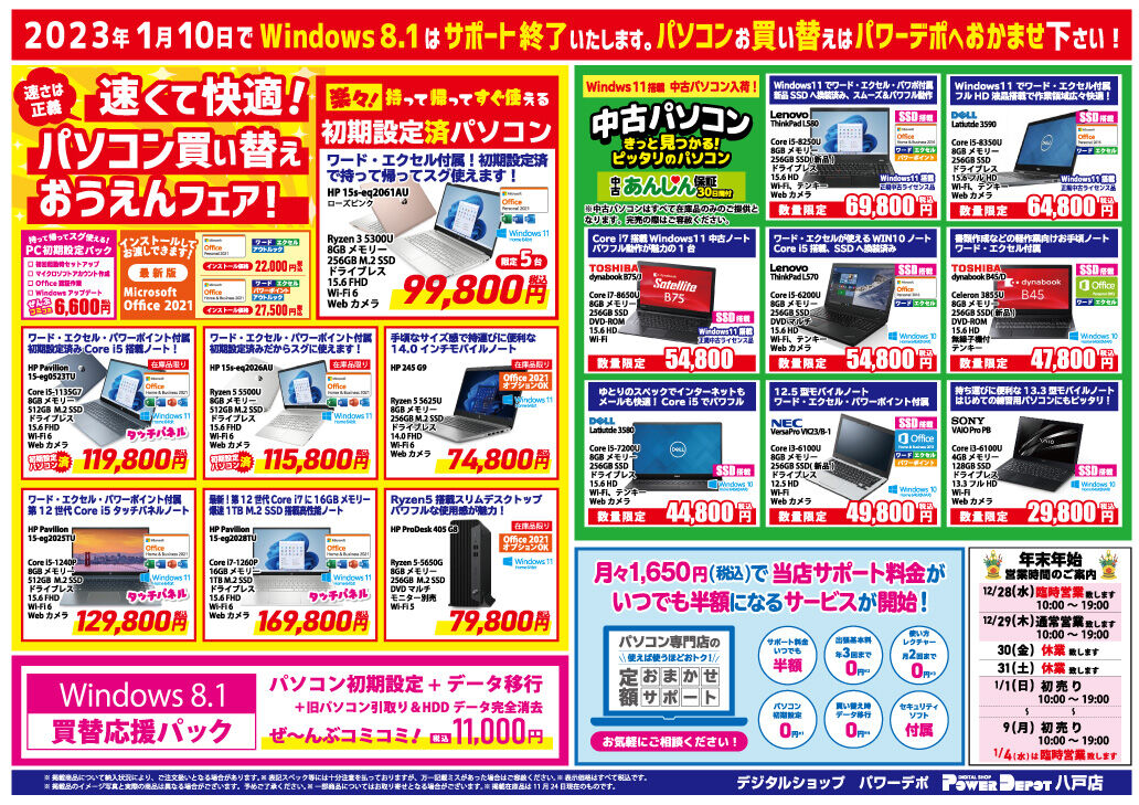 来年も地域のパソコンショップとして皆様のお役に立てるよう努めてまいりますので、何卒宜しくお願い致します。