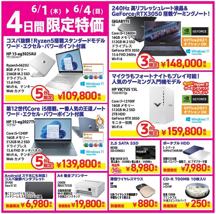 家計応援「お得!パソコン祭り」開催!
