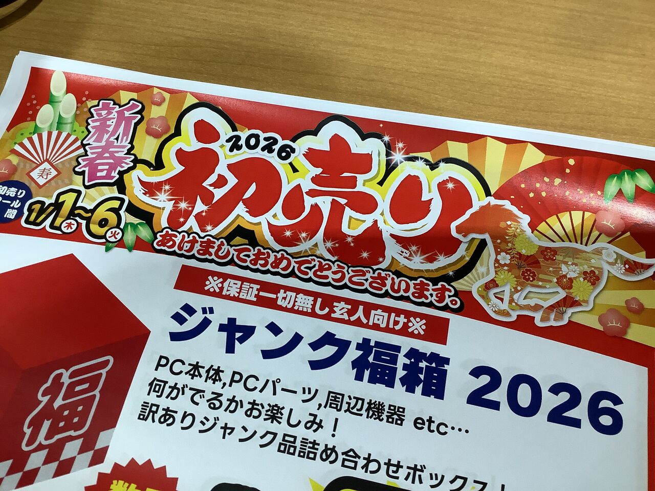 ※ジャンク福箱の整理券配布は1月2日となります。元日は販売いたしませんのでご注意ください。