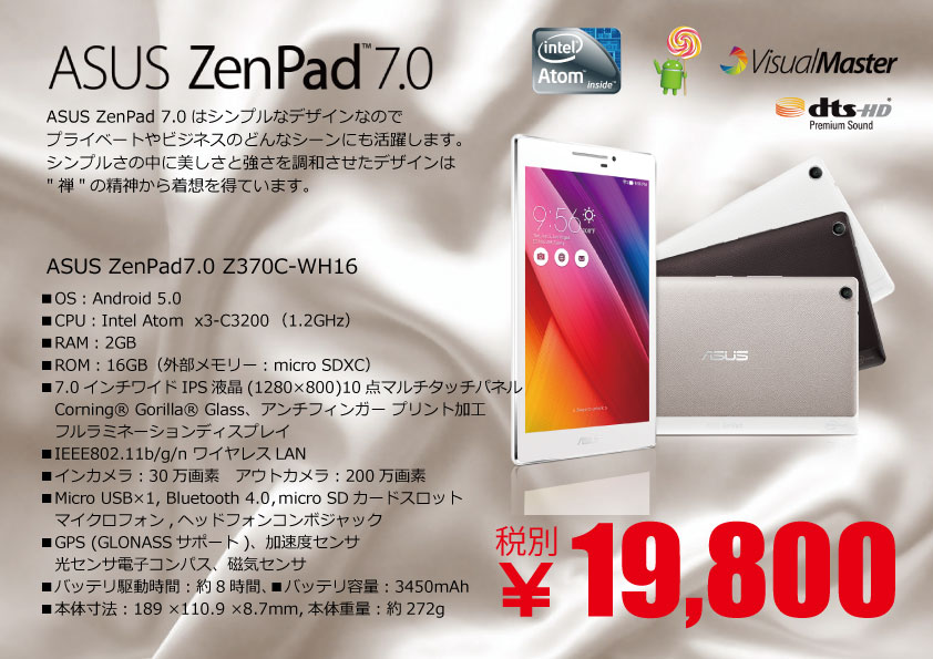 ASUSの最新モデルタブレット 《 ZenPad7.0 》 が入荷しました!
