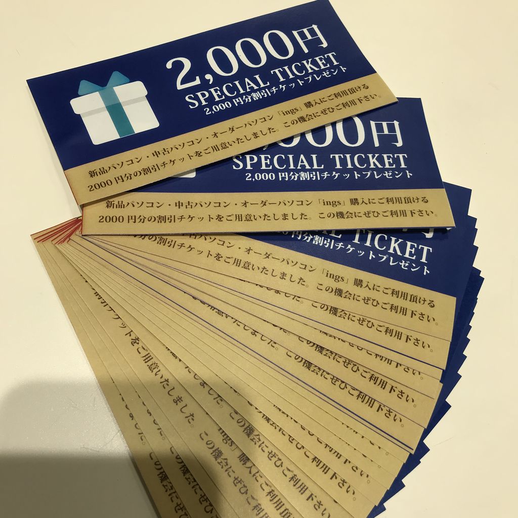 パワーデポオリジナルPC『ings』お見積りで本体ご購入時に使える2,000円割引クーポンをプレゼント致します!