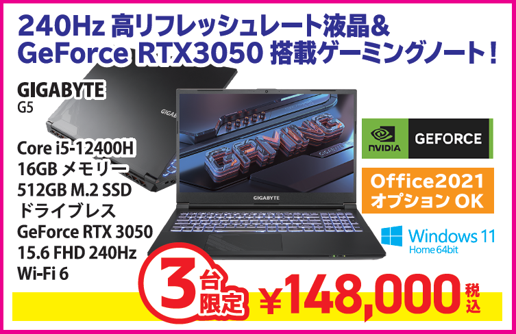 RTX3050を搭載したゲーミングノート!