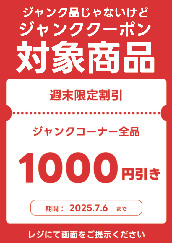 ジャンクコーナー全品1000円オフクーポン!