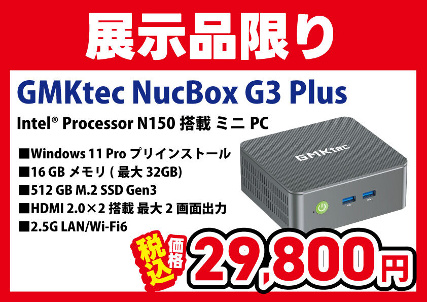 GMKtec製ミニPCラインナップ追加!展示処分特価品も!
